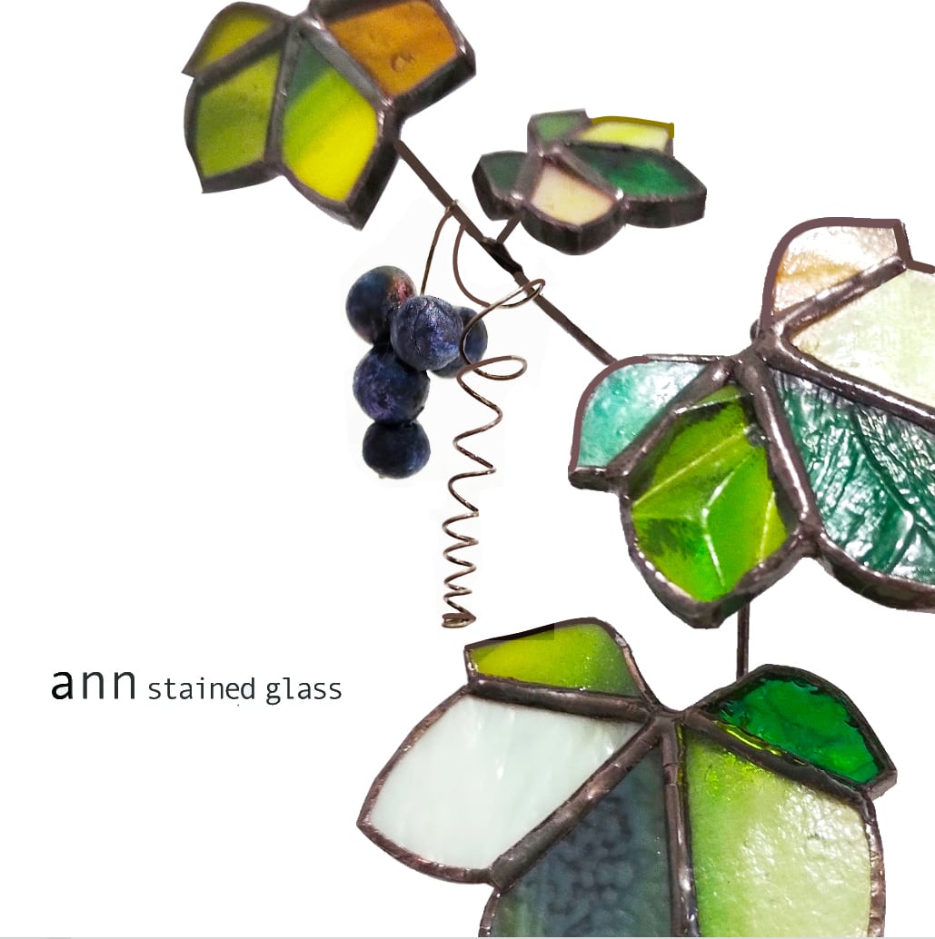 可愛い果実をつけた黑醋栗をガラスで制作しました。